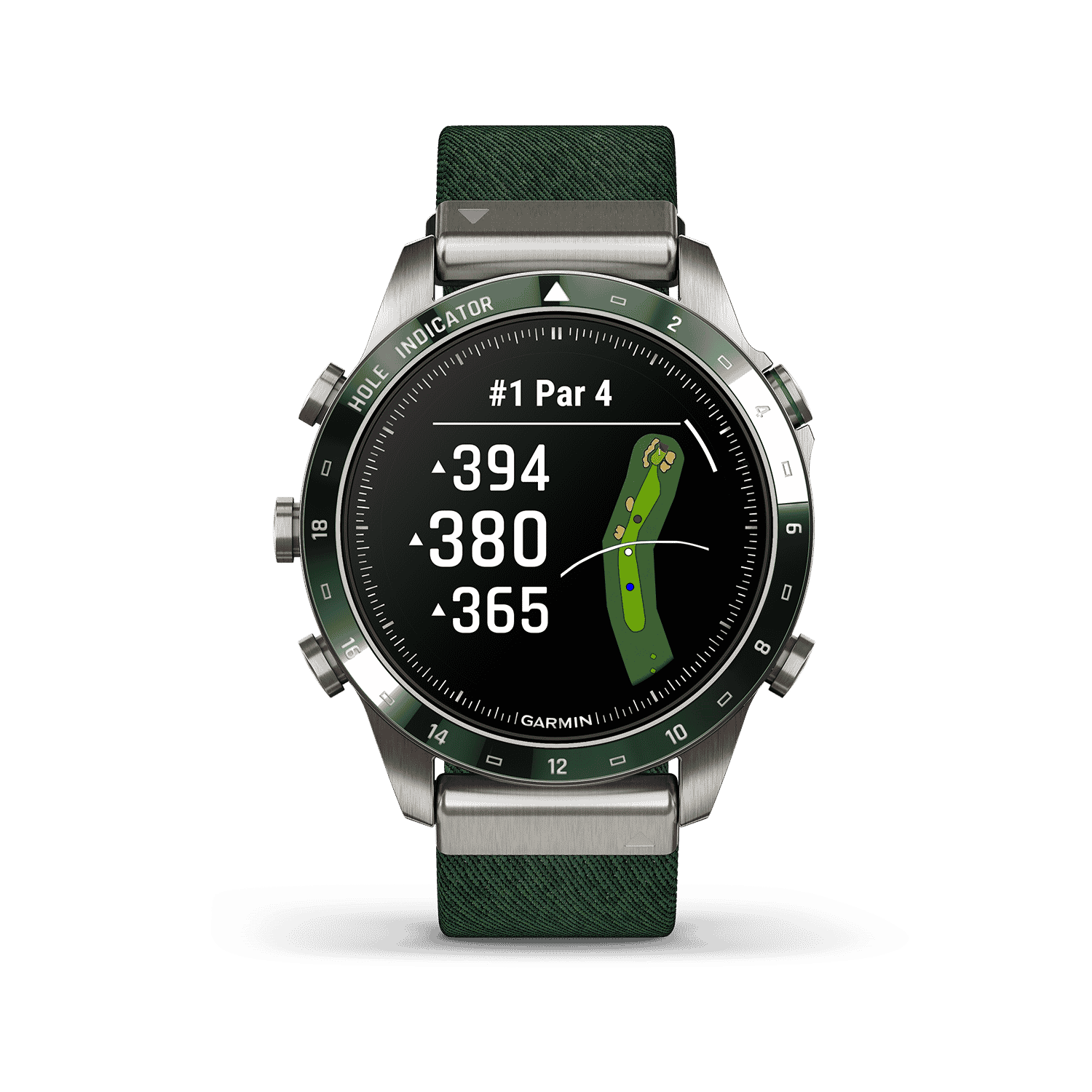 - Forhåndslastet med mer enn 42 000 internasjonale golfbaner og CourseView-kartfunksjoner i farger på håndleddet; se avstander til forkant, senter og bakkant av green